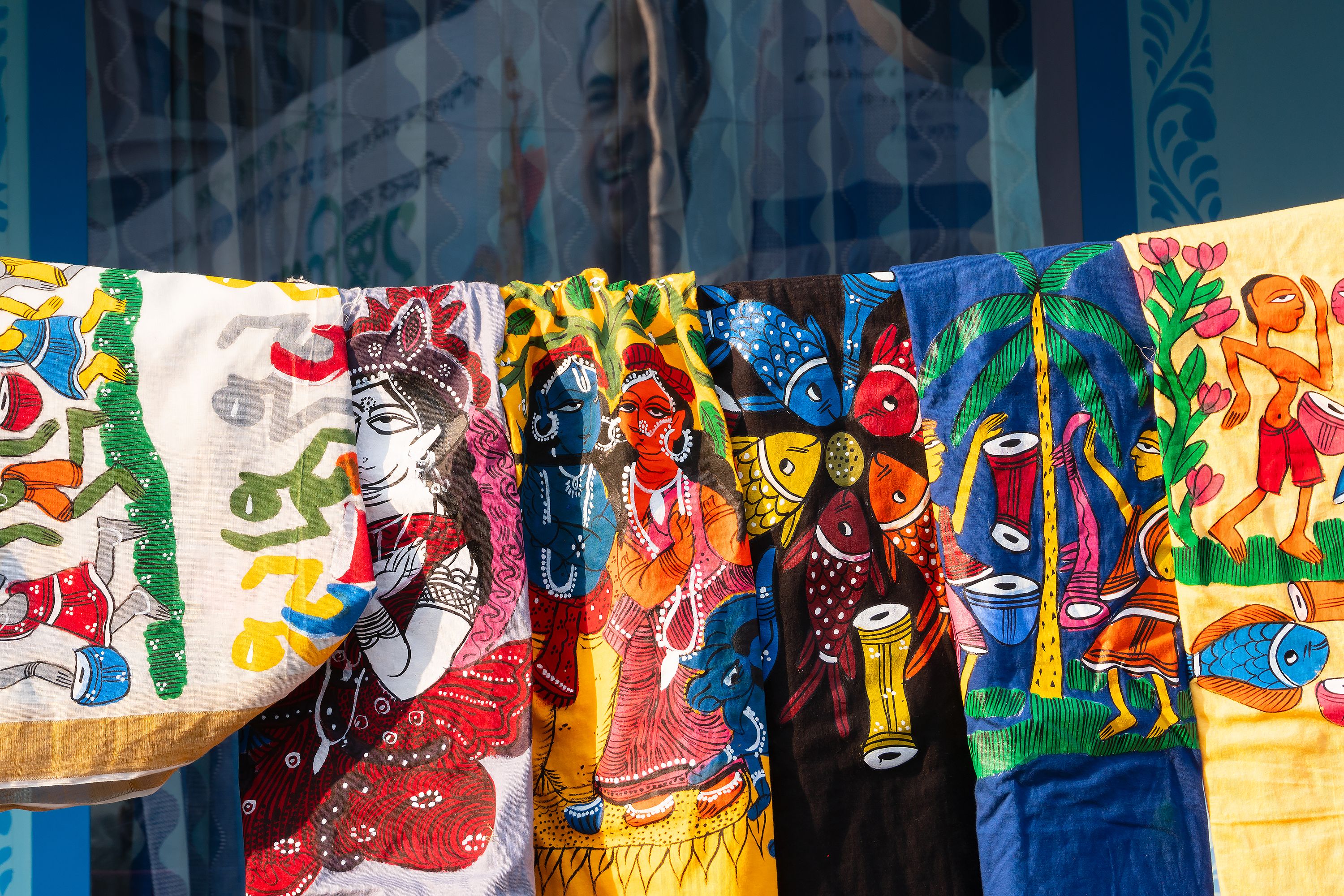 Patachitra is a type of traditional, hand-painted scroll painting made in the Indian state of West Bengal. The paintings are created using natural dyes and pigments on cloth or paper, and depict a variety of subjects, including mythology, folklore, and contemporary themes. Patachitra artisans are known for their skill and attention to detail, and the finished paintings are often vibrant, intricate works of art.