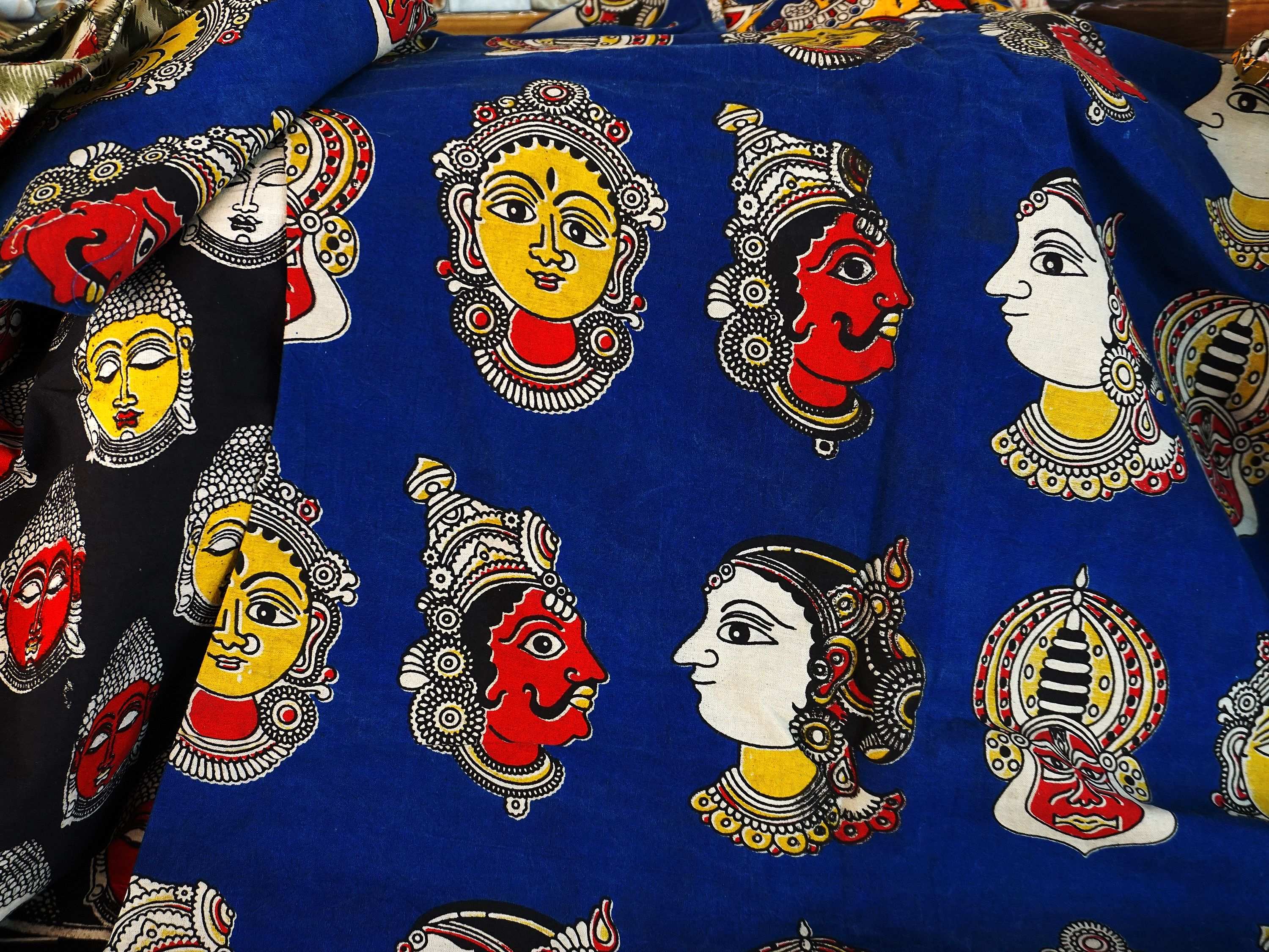 Machilipatnam Kalamkari is a traditional hand-painted or block-printed fabric art form that originated in the Krishna region of Andhra Pradesh, India. The art form is known for its intricate designs, which are created using a pen or a block, and depicts scenes from Hindu mythology, as well as floral and paisley patterns.