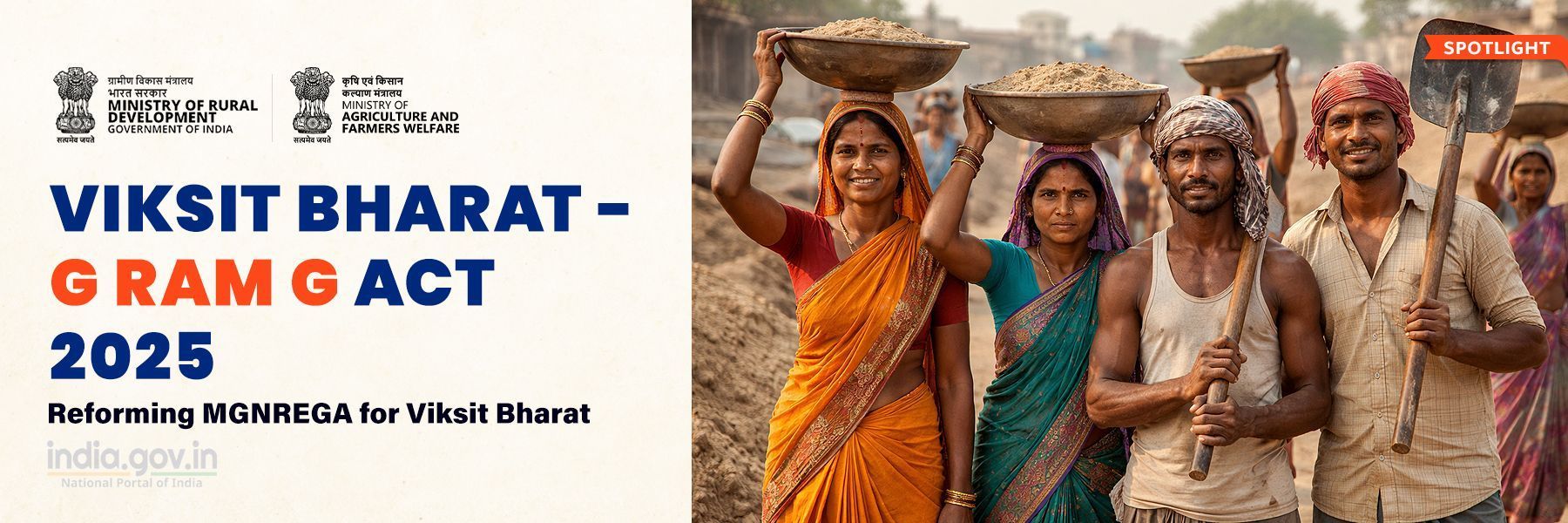 Viksit Bharat - Guarantee for Rozgar and Ajeevika Mission (Gramin)The Viksit Bharat - G RAM G Act,2025 replaces MGNREGA with a new statutory framework aligning rural employment with the long-term vision of Viksit Bharat 2047, while strengthening accountability, infrastructure outcomes and income security.